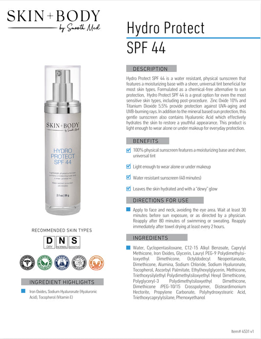 Our sunscreens are great for sensitive skin and all skin types. Check out our HydroProtect SPf with a tint and hyaluronic acid base.
